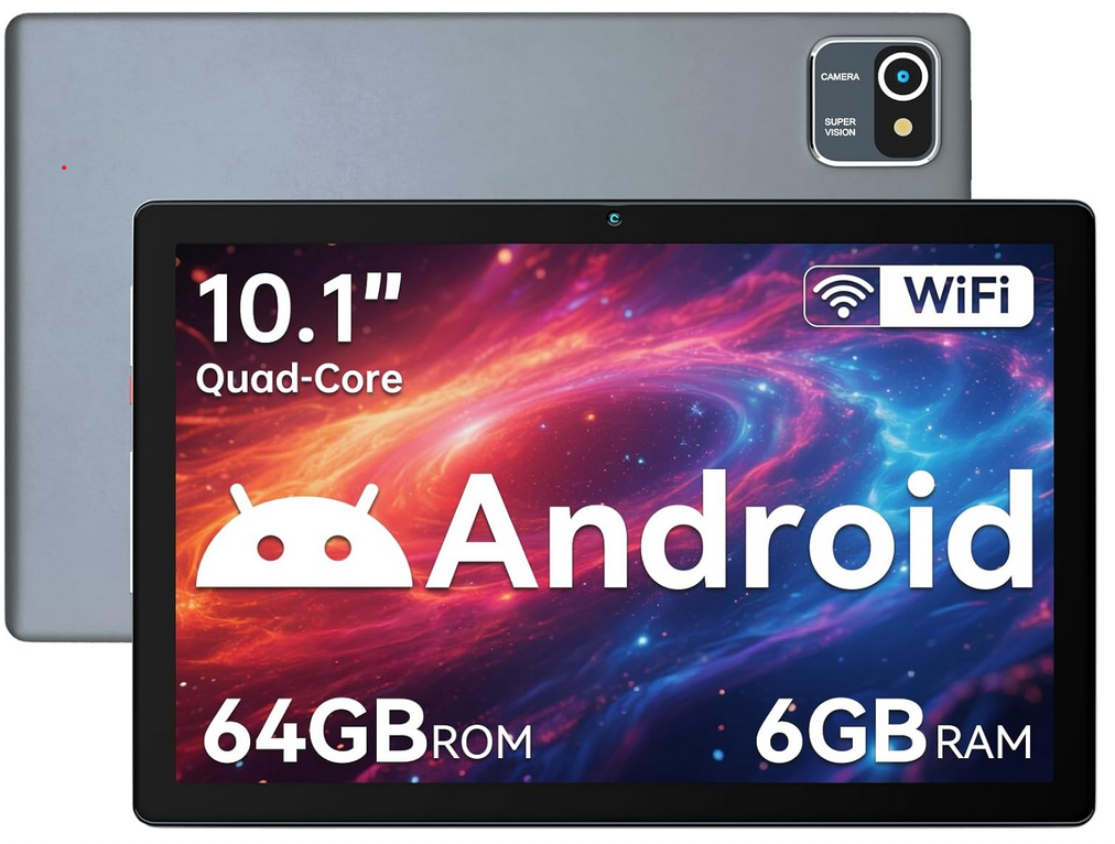 10 Pouces Tablette Android 13 Tablettes 6 Go RAM + 64 Go ROM Quad-Core 5000 mAh 1280 x 800 Écran Tactile HD 5MP + 8MP Caméra HD Bluetooth 5.2 Tablette PC (Gris)